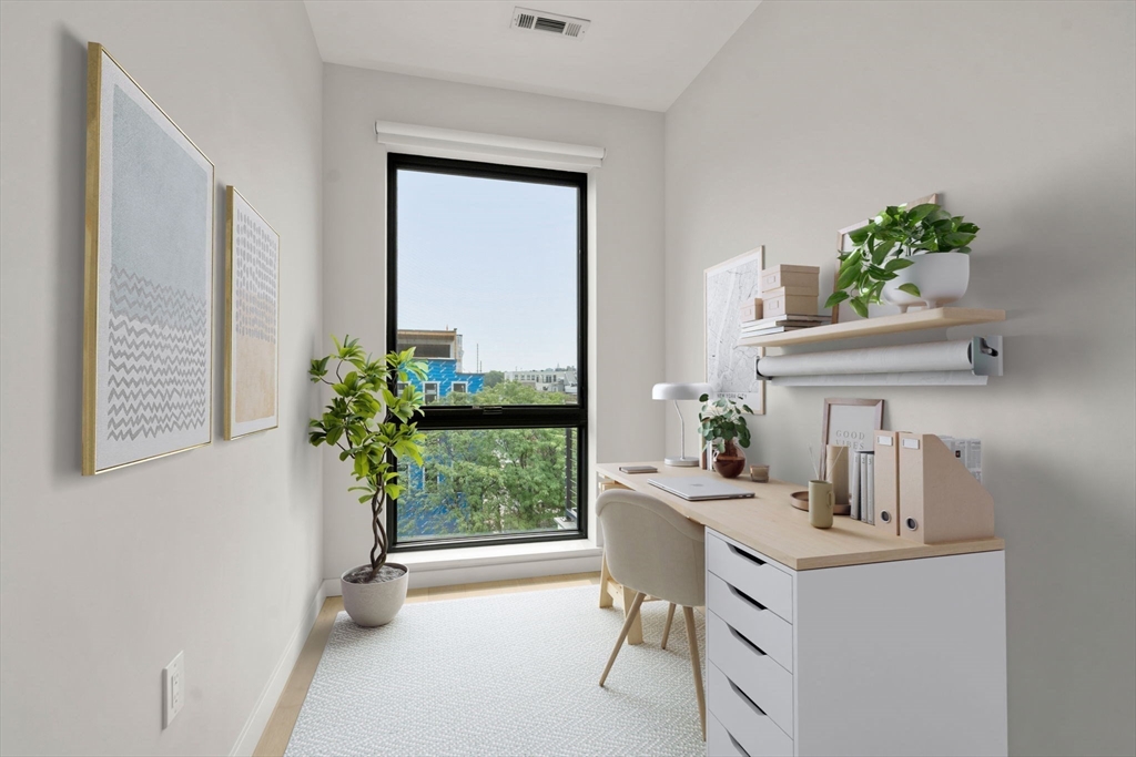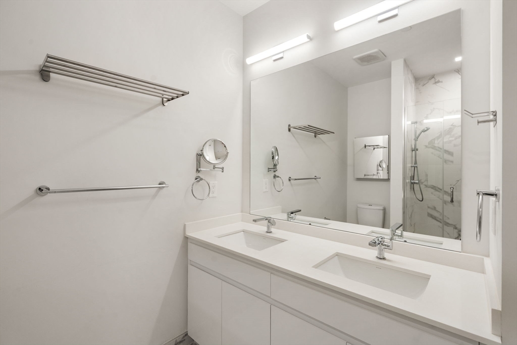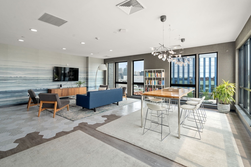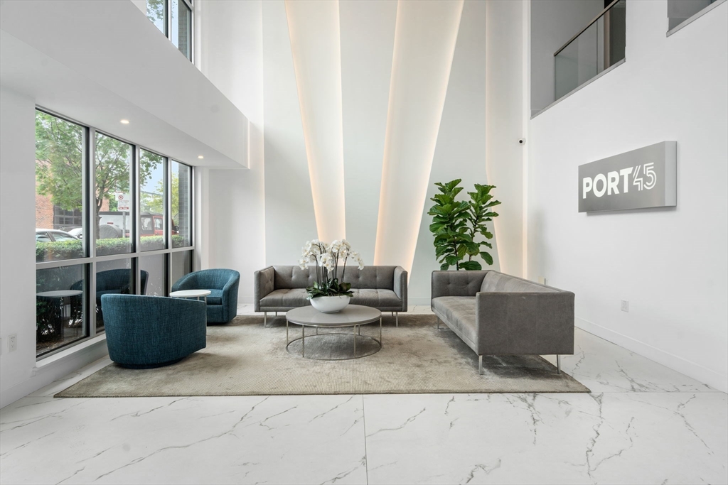 Enjoy modern city living at PORT 45 in South Boston! This bright two-bedroom, two-bath corner apartment offers over 1,000 sq. ft. of space plus a versatile den, perfect for a home office or creative nook. Floor-to-ceiling windows bring in plenty of natural light, and the open layout flows easily from the sleek kitchen to the living and dining area. Step outside onto the private south-facing balcony for fresh air and relaxation. The primary suite includes a walk-in closet and a spacious bathroom with double vanity. Additional features include in-unit laundry and a garage parking space available for rent at $300/month. As a resident, you'll have access to a fitness center, club room, rooftop terrace with city and harbor views, and concierge services. PORT 45 is located near the Seaport, Financial District, and some of South Boston's best restaurants, cafes, and nightlife.
